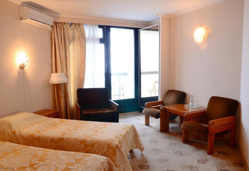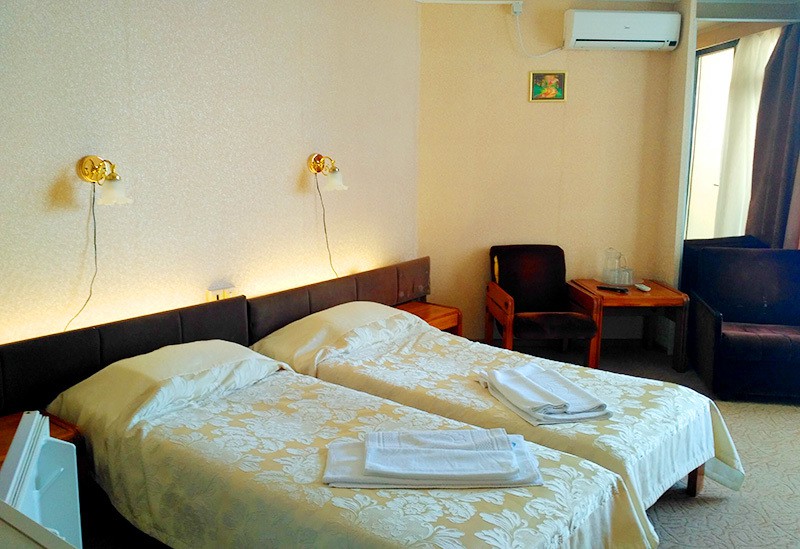 Площадь номера - 20 кв.м. 1 комната. 2 осн. места. вид на море. В номере: телевизор; холодильник; балкон; кондиционер; душ; умывальник; туалет; 1-спальные кровати. 1 доп. место: Еврораскладушка - может быть установлена без ограничения по возрасту.